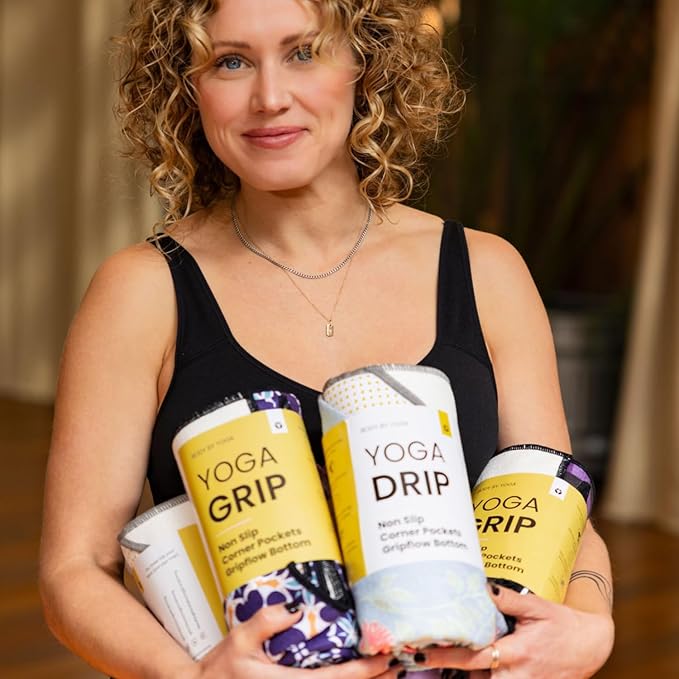 Yoga Drip Yoga Towel - Non Slip Hot Yoga Mat Towel With Corner Pockets, No-Skid Grip, and Built-in Alignment Lines | Soft, Moisture Wicking, and Sweat Absorbent | No Bunching, Stays in Place 72" x 25"