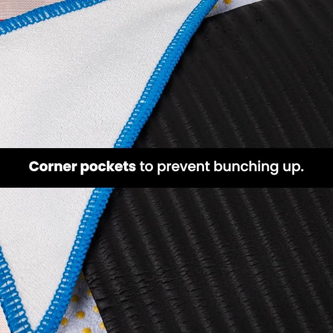 • Corner Pockets for Stability: Innovative corner pockets anchor the towel to your mat, preventing bunching and shifting, so you can stay focused on your poses, not the bunches.