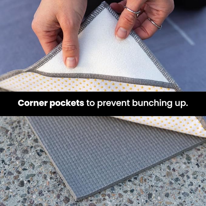 • Corner Pockets for Stability: Innovative corner pockets anchor the towel to your mat, preventing bunching and shifting, so you can stay focused on your poses, not the bunches.