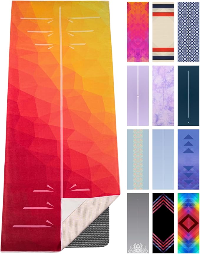 Yoga Drip Yoga Towel - Non Slip Hot Yoga Mat Towel With Corner Pockets, No-Skid Grip, and Built-in Alignment Lines | Soft, Moisture Wicking, and Sweat Absorbent | No Bunching, Stays in Place 72" x 25"