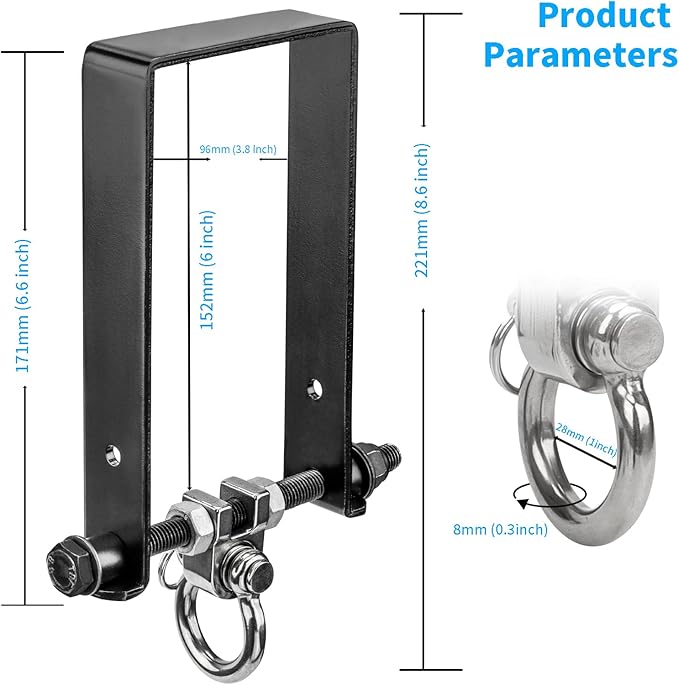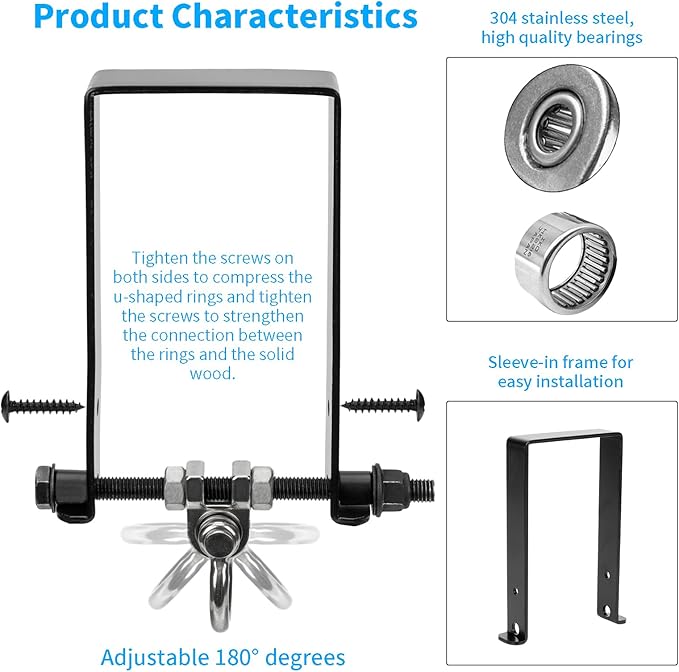 • HIGH QUALITY: The heavy duty swing hanger is made of durable carbon steel material, the interface of the bracket is not formed by welding, so it is not easy to break or deform.The ring part is made of stainless steel