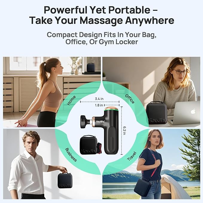 • 【Super Mini Design for Your Pocket】Our mini massage gun only weights 0.6lbs, which can be easily put in both bags and pockets. The ergonomic L-shaped design and skin like feel makes you love it, and you can easily carry it in the gym, office and traveling to relax your body.