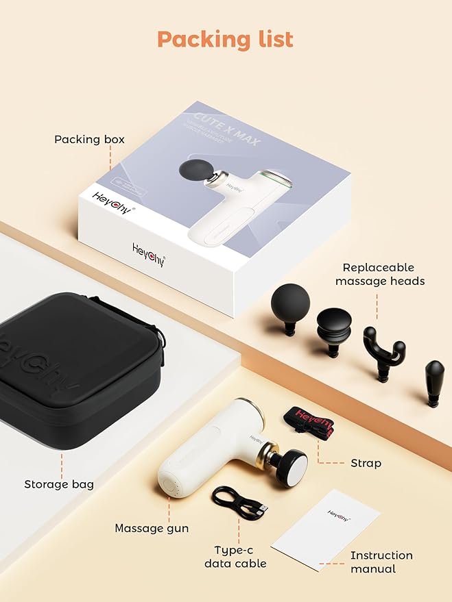 • Mini Massage Gun with Heat: Mini Percussion Muscle Massager with heated massage head,warms up to 46℃/114°, the heat reaches the fascia layer directly to promote deeper muscle relaxation and stress relief