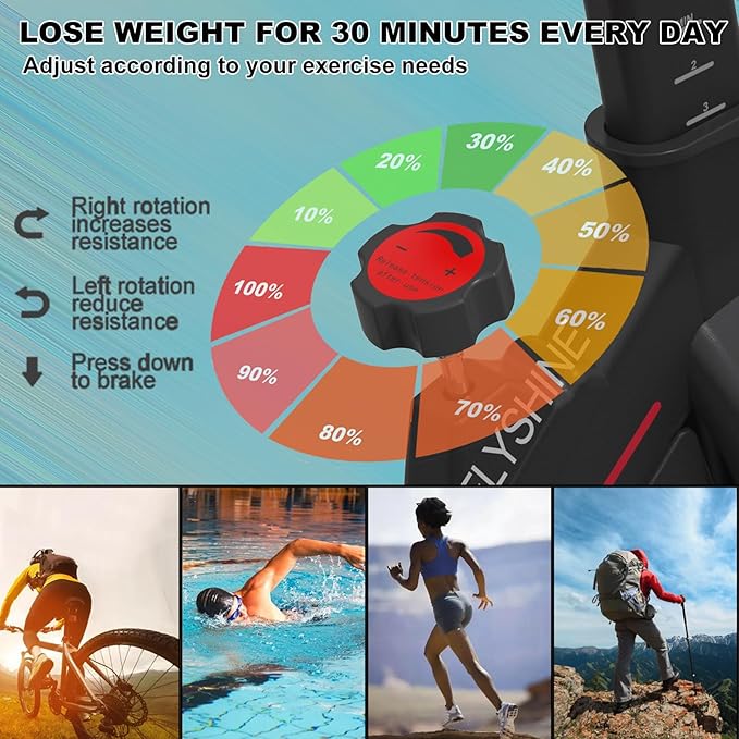 • 🚴【INFINITE ADJUSTABLE RESISTANCE SYSTEM】 Customize your workout intensity with the bike's adjustable resistance levels to suit your fitness goals, allowing for a challenging or comfortable workout. This exercise bike provides an effective cardiovascular workout to improve heart health and burn calories.