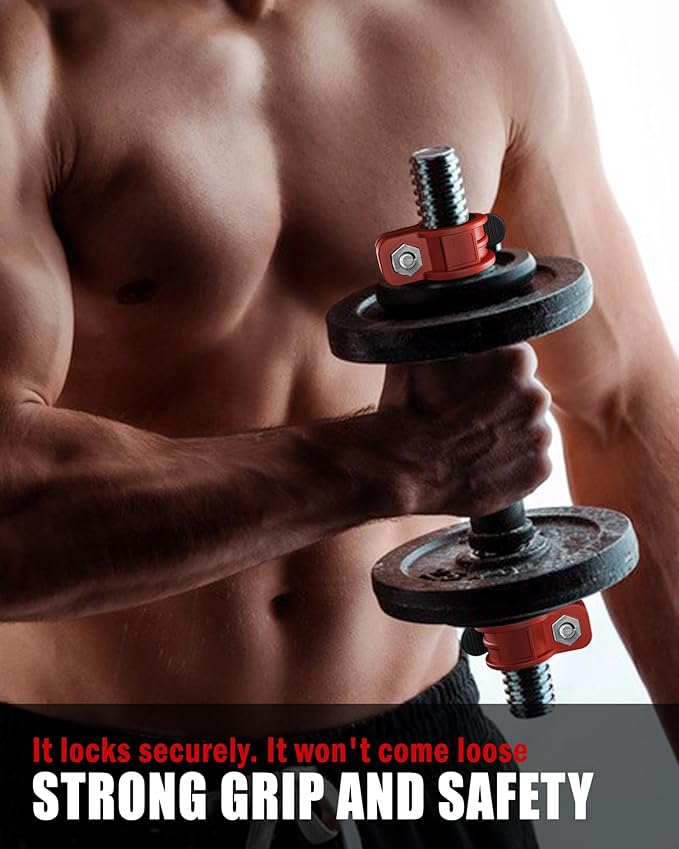 • STRONG GRIP :Weight bar clips are specially designed for weightlifting and designed to provide an extra secure grip.Use these weight clips to hold your weights in place(Weight: 400+lbs)so they don't go rolling around while you're lifting. The proof of strength, even if you hold the dumbbell vertically(Weight: 60lbs), you can keep the weight! These weightlifting clips are perfect for dumbbell rows,benching, squatting etc.