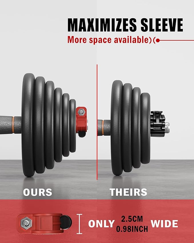 • SAVE TIME:Featuring quick release design, Quick release weight locks are the best way to change weights quickly.olympic bar collar offer easy loading.It takes less than 5 seconds to install,save time,The handle is bulletproof and securely locked,so you can focus on your lift.