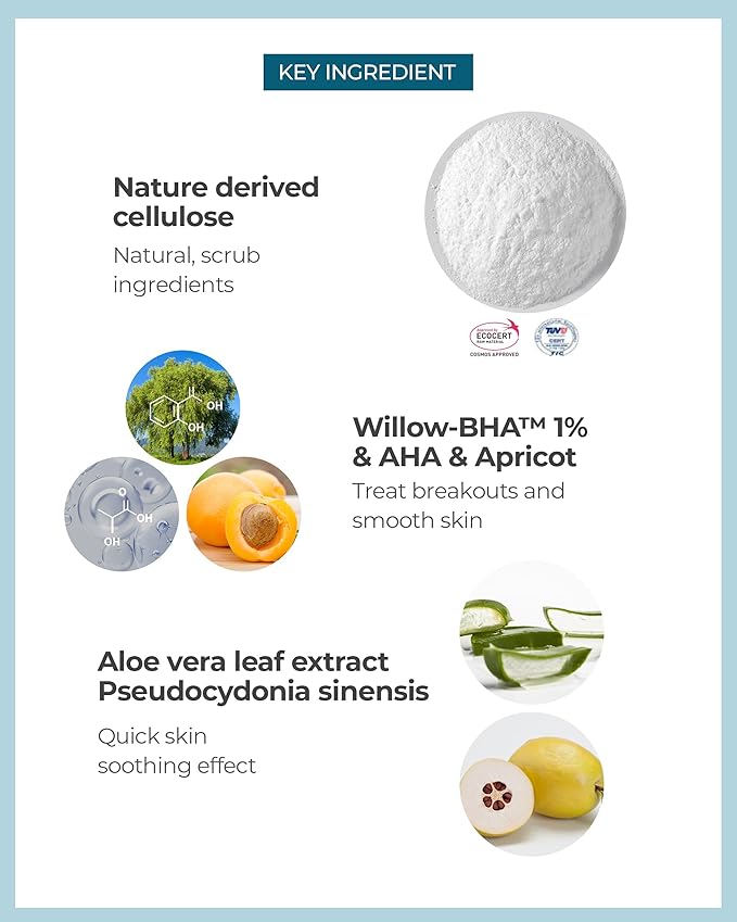 • RAPID AND EFFECTIVE EXFOLIATION: Experience fast and efficient exfoliation with the BHA+ Pore Zero 30 Second Exfoliator. This product combines plant-based cellulose and powerful exfoliants like Willow-BHA and AHA to control sebum and provide a quick, gentle peeling, transforming your skin in under a minute.