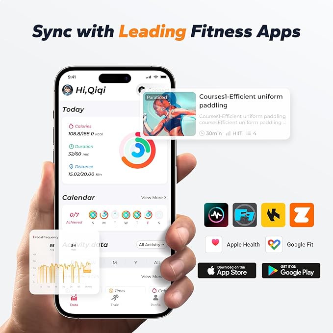 • Real-time Fitness Tracking: The exercise bikes for home connects with the self-developed Merach APP and FantomFite gaming app. Monitor key workout stats in real time, including resistance level, distance, time, calories, and BPM. Easily sync your data with Google Fit and Apple Health for a more complete fitness overview