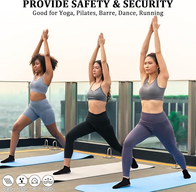 • NON-SLIP BOTTOM DESIGN: Featured anti skid dots on the bottom of the grips socks.These gripper sticky socks can provide better stability & balance on the floor surface while you’re working out