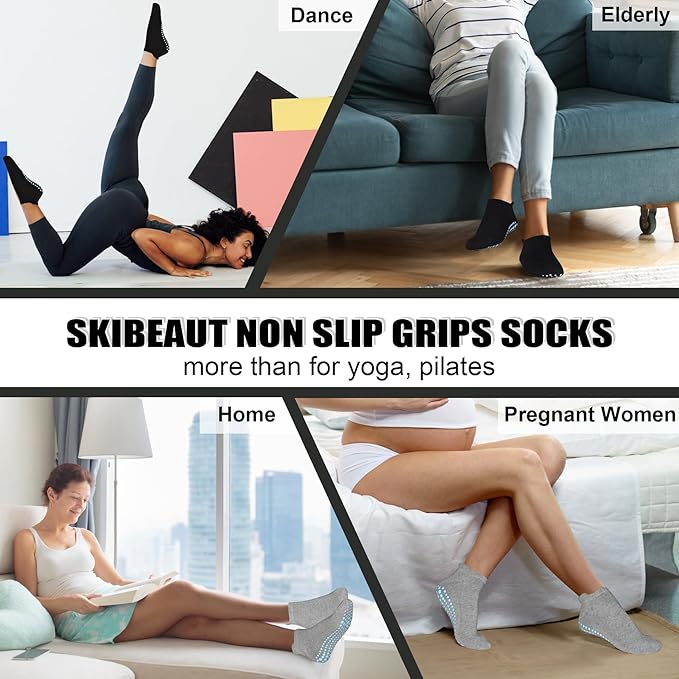 • SIZE: SkiBeaut Pilates Socks are available in two sizes. M:5-8, L:8-10, XL:10-12. Fit US most women shoe size 5-12, they’re multi-color, and have unisex colors: gray and black.