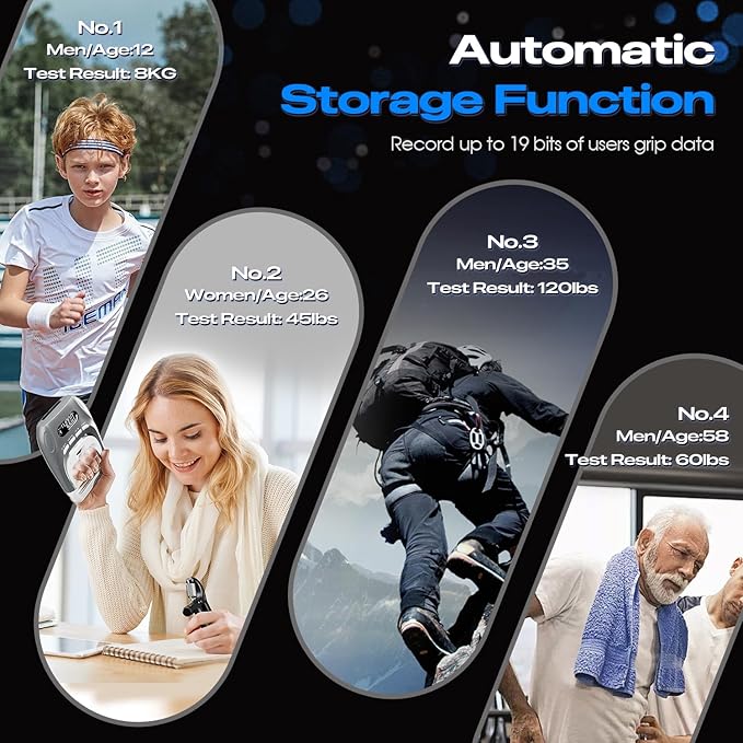 • [Smart Team Progress Tracking​]-The compact handgrip trainer tester is perfect for youth and adult sports teams. It can store up to 19 user profiles with full gender and age details, facilitating progress tracking. It can recall the last grip strength test record for each profile and clearly show whether the current hand strength has increased or decreased.​