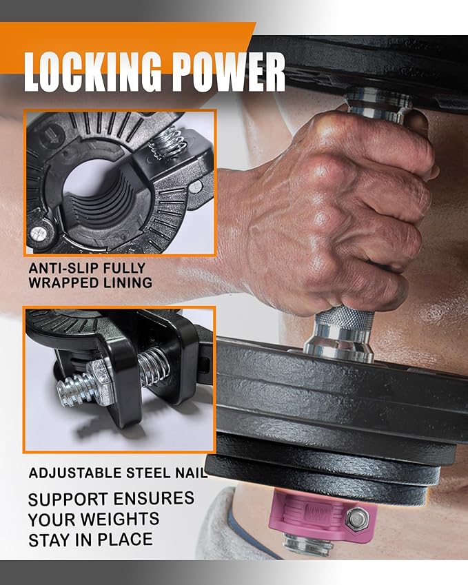 • HIGH-END QUALITY: heavy-duty hard nylon + TPR soft rubber, the complementary combination of soft and hard, weight clips for bars the nylon outer body is as hard as stone, resistant to falling, wear-resistant, the special rapid rebound of TPR soft rubber can withstand strong pressure and is not easy to deform,Commercial-grade quality to ensure your sports safety