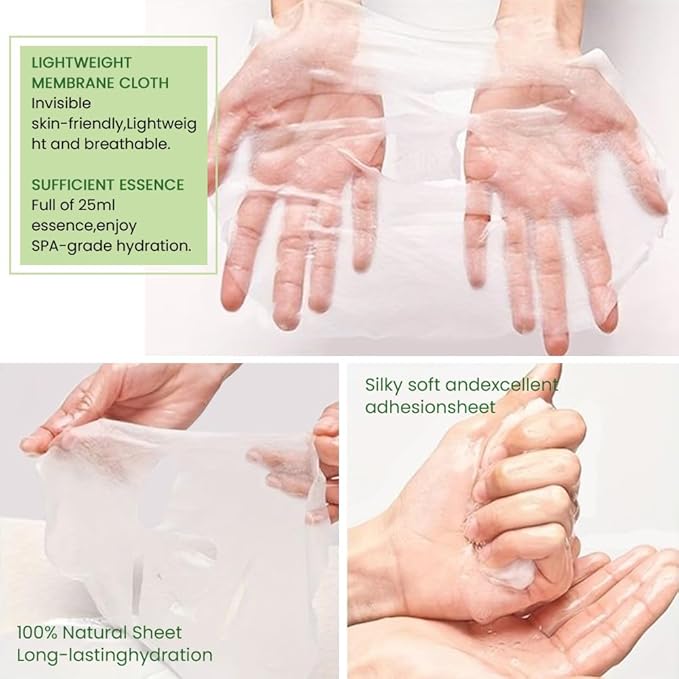 • FACIAL SKINCARE SHEET MASK:This premium women's skin care mask is silky smooth,moisturizing,refreshing and has increased efficacy and adhesion to block evaporation and lock in moisture for a hydrating effect that lasts all day