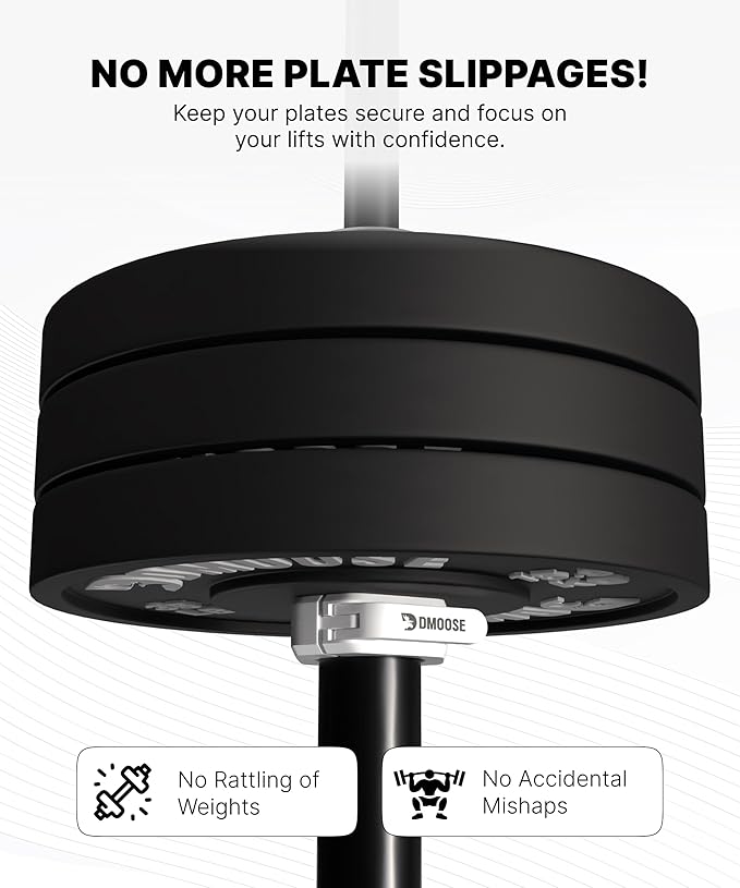• SECURE HOLD FOR RELIABLE PERFORMANCE: The advanced locking mechanism of weight bar clamps guarantees a rock-solid hold ensuring that plates stay firmly in place and won’t shift or slip during lifts. Train with confidence knowing your weights are securely locked in place.