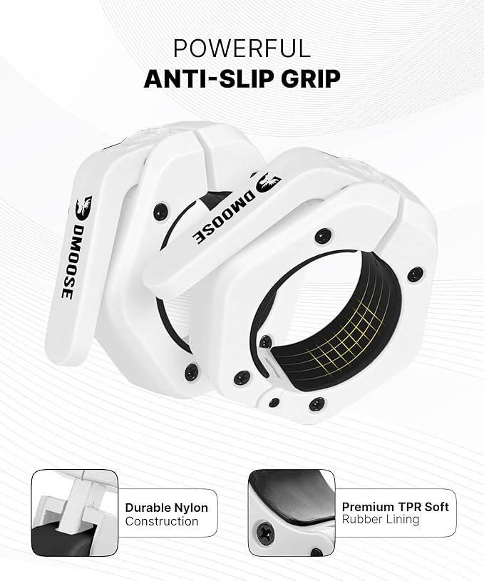 DMoose Fitness Barbell Clips 2 Inch (Pair) - Quick Release Olympic Barbell Clamps & Collars with Anti Slip TRP Grip for Secure Weightlifting and Powerlifting - Weight Clips for Bars at Home or Gym