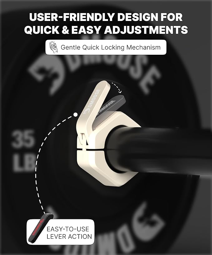 • SECURE HOLD FOR RELIABLE PERFORMANCE: The advanced locking mechanism of weight bar clamps guarantees a rock-solid hold ensuring that plates stay firmly in place and won’t shift or slip during lifts. Train with confidence knowing your weights are securely locked in place.