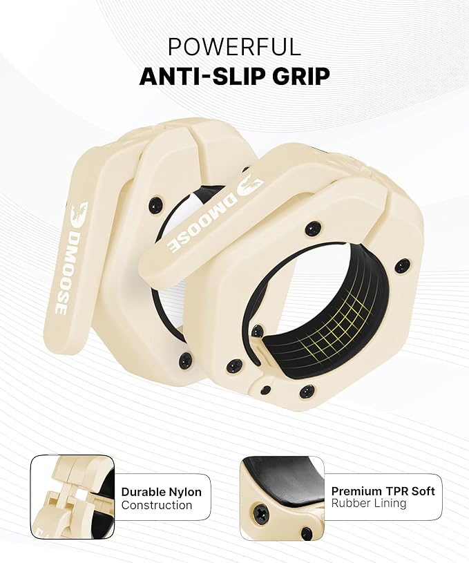 • DURABLE CONSTRUCTION WITH TRP RUBBER LINING: Made with high-quality materials, these quick release clamp feature TPR rubber lining to protect your barbell & plates from wear and tear. Built for long-lasting durability, they’ll hold up through countless workouts.