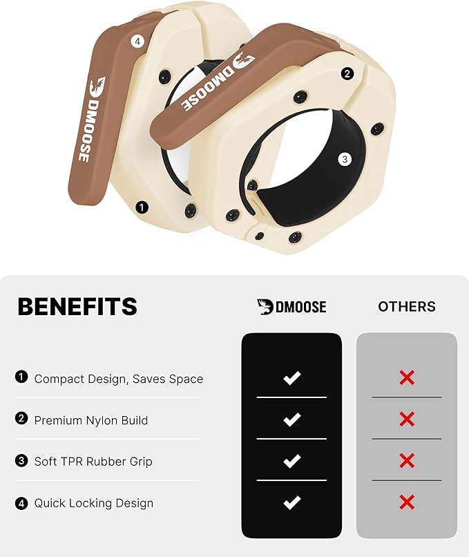 DMoose Fitness Barbell Clips 2 Inch (Pair) - Quick Release Olympic Barbell Clamps & Collars with Anti Slip TRP Grip for Secure Weightlifting and Powerlifting - Weight Clips for Bars at Home or Gym