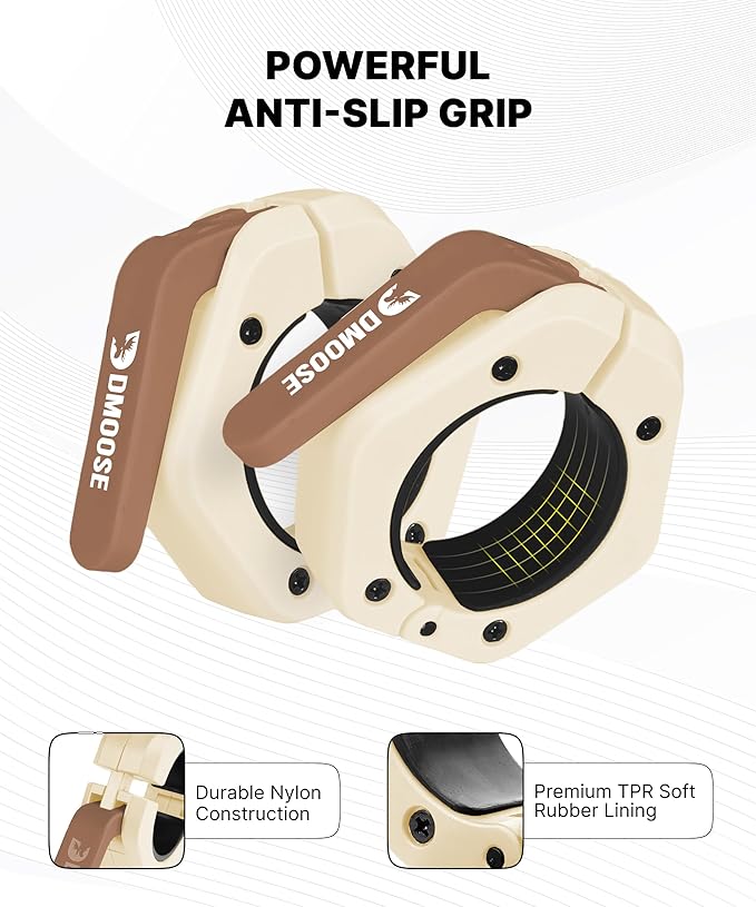 • DURABLE CONSTRUCTION WITH TRP RUBBER LINING: Made with high-quality materials, these quick release clamp feature TPR rubber lining to protect your barbell & plates from wear and tear. Built for long-lasting durability, they’ll hold up through countless workouts.