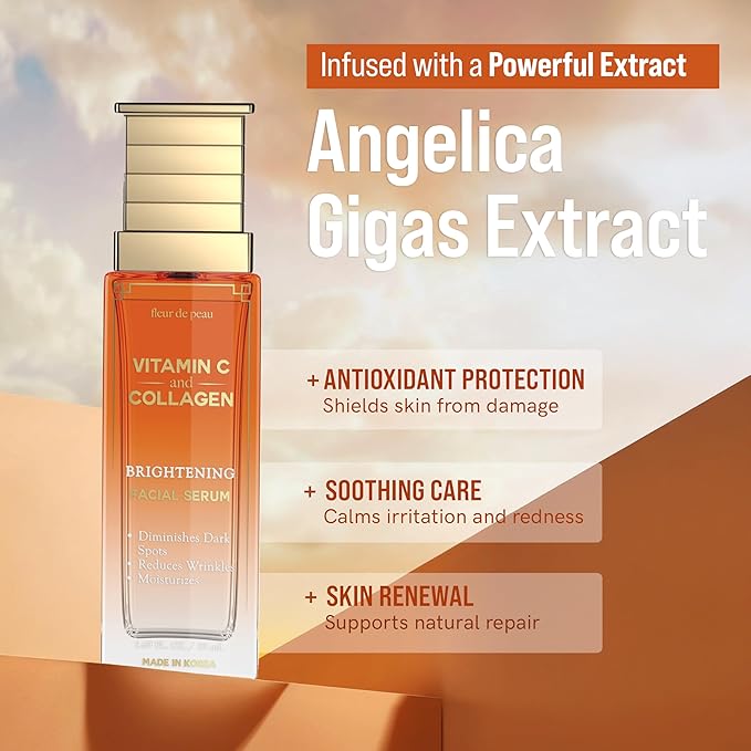 Fleur De Peau Vitamin C Serum For Face With Collagen – Dermatologist Tested, Anti-Aging, Brightning, Reduces Fine Lines, Improves Radiance & Skin Texture – 95% Natural, Clean Beauty – Korean Skin Care