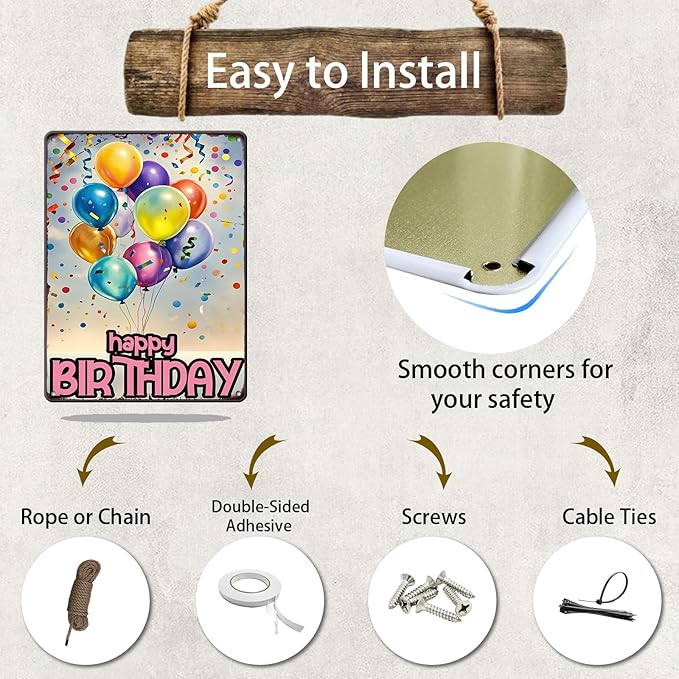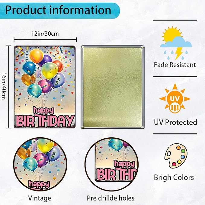 Happy Birthday Vintage Tin Sign Metal Sign Balloon Family Birthday Party Spring Summer Farmhouse Poster For Home Garden Bar Club Coffee Sign 12x16 Inch