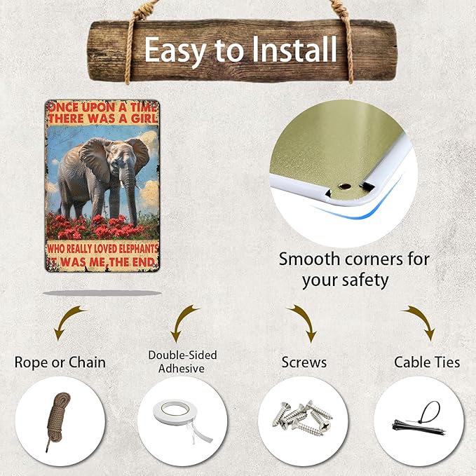Retro Elephants Metal Poster There Was A Girl Who Really Loved Elephants Metal Tin Signs Vintage Plaque Wall Decor Gift For Home Kitchen Office Men Cave Club Bar 8x12 Inch