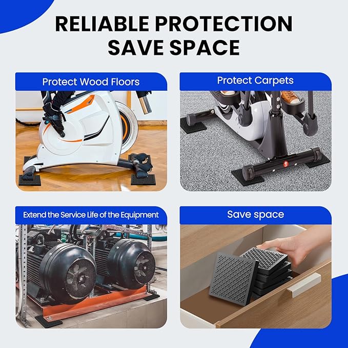 • Lnakio exercise equipment mat, built-in internal steel plate, has high strength and durability, ensuring uniform weight distribution, preventing heavy equipment compression, and improving load-bearing capacity; the surface grid design greatly increases the anti-slip and stress-bearing area, which is very suitable for treadmills, elliptical machines, rowing machines, fixed bicycles, dumbbell suits, home gyms, rebounders, etc