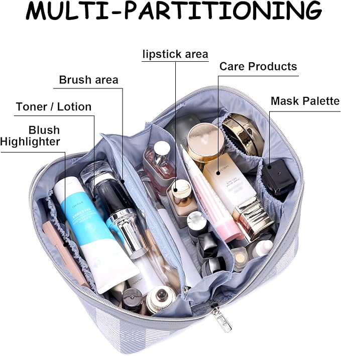 • Large Capacity Travel Cosmetic Bags for Women: The size of cosmetic travel bag is 9.25*5.1*5 inches, fit for 8oz toner or even larger bottles.The size and capacity can easily store cosmetics and skincare toiletries, easy to carry for travelling.