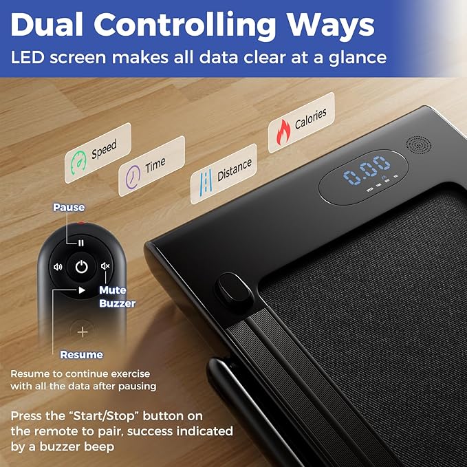 • 3.0 HP Brushless Motor: Featuring a 3HP brushless motor, this walking pad treadmill operates efficiently with low noise (<45dB), perfect for home and office use. Moreover, the powerful motor and heavy duty frame ensure 340lbs weight capacity.