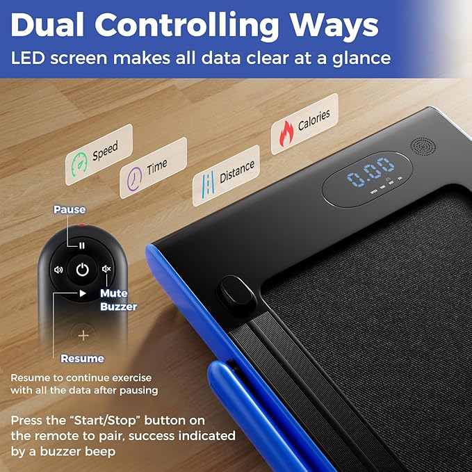 • Dual Controlling Ways: Keep track of your fitness goals with the LED display that shows real-time speed, time, distance and calories. Control the treadmill effortlessly with a handy remote control or via smart APP control (Gymax/Kinomap), unlocking additional features and a streamlined workout experience.
