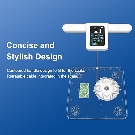 • NO MORE LOOKING DOWN: Fitdays bathroom scale features a large, clear 4.1x2.46-inch color display on the retractable handle, allowing you to conveniently view your measurements without having to stare down. In addition to weight, 6 essential body composition will also displayed simultaneously on the screen so you can see them at a glance without opening the app