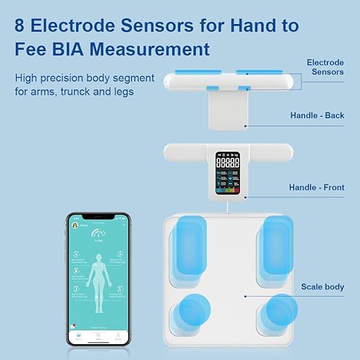 • COMPREHENSIVE & PRECISE MEASUREMENTS: In contrast to other weight scales with 4 electrodes that only measure half of the body, fitdays digital scale uses 8 electrode segmented BIA technology to measure the body in five sections (limbs and torso). This leads to a more real and precise analysis of body composition