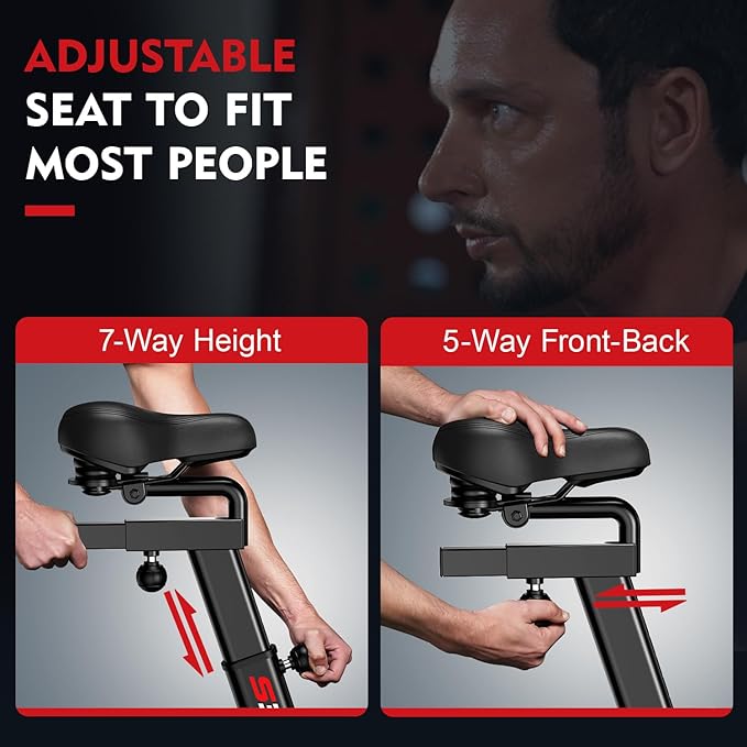 • 【Personalized Fit Exercise Bike】 This cycle bike with adjustable seat to fit users with different heights. The seat facilitates proper body form during exercises and allows the equipment to precisely conform to the body.