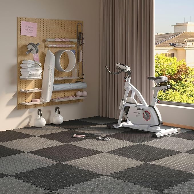 Home Gym Mat, Puzzle Exercise Mat, EVA Interlocking Foam Floor Tiles for Home Workout Equipment and Kids' Play Areas - Blue, 24 in x 24 in x ½ in - (Grey, 24 Pack, 96 SQ FT)