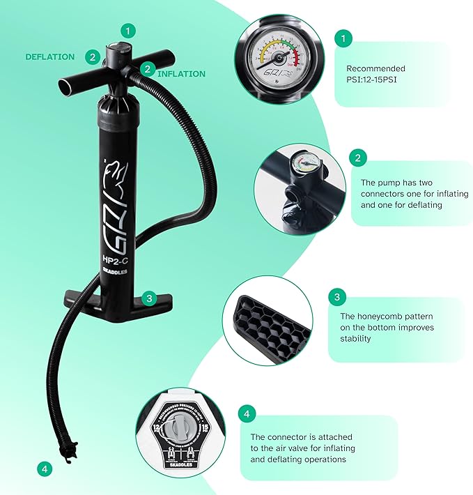 • 【All-in-One SUP Accessories Kit】 Each SKADDLES paddle board comes with a high-efficiency manual air pump, adjustable paddle, ankle safety leash, waterproof phone pouch, repair kit, and removable fins — everything you need for easy setup and worry-free paddling adventures.