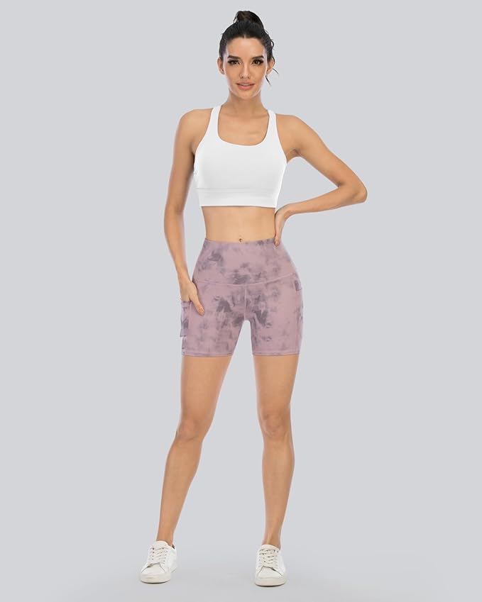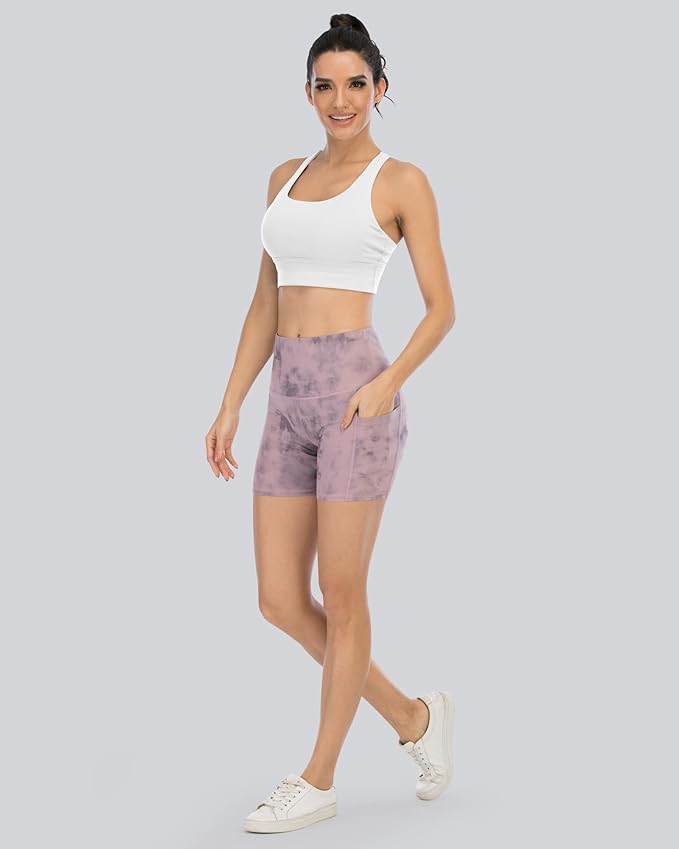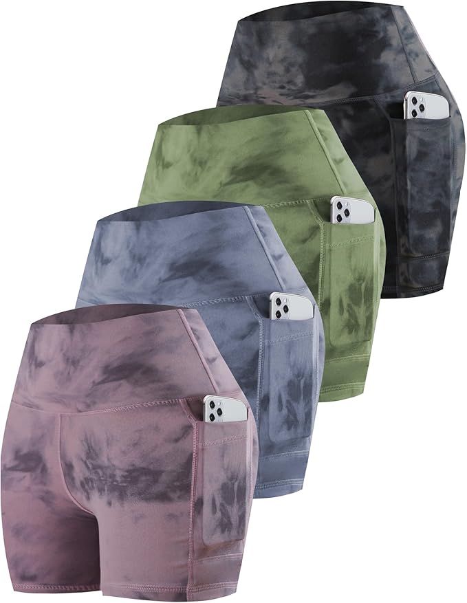 CHRLEISURE Womens Biker Yoga Shorts with Pockets: High Waisted Tummy Control Spandex Workout Athletic Gym Shorts 4 Packs