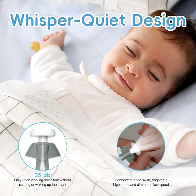 • Noiseless – Equipped with a whisper-quiet design, you can file nails even as the baby sleeps, without causing any disturbance.