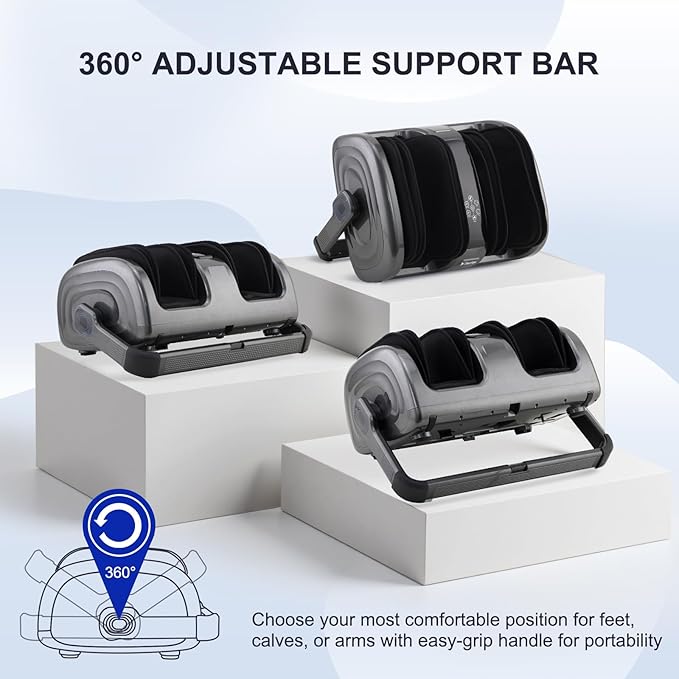 • 【Multifunctional Foot and Calf Massager】The foot massager equipped with 8 airbags units, 2 heating pads, 8 rollers, and 32 nodes. Heat function rolling and deep kneading shiatsu massage providing relaxation for you. Provides a soothing foot massage experience that promotes deep relaxation throughout your body, helping you unwind after a long day and achieve complete comfort.