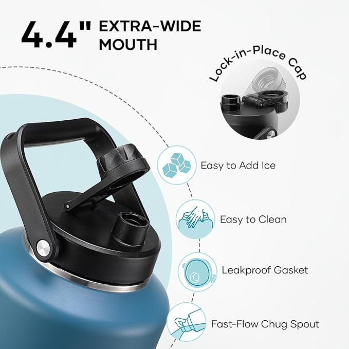 • Ice-Cold For Days: With our ThermoArmour technology and triple-layer vacuum insulation, our gallon water bottles lock in chill for 48+ hours and keep drinks hot for 24+ hours. Pro tip: the bigger the bottle, the more ice it holds, and the longer it stays cold