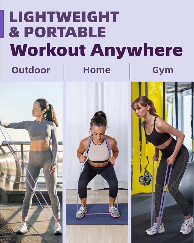 • Portable and Easy to Use: Designed for on-the-go convenience, our resistance bands for exercise stretch are lightweight and compact. Complete with a door anchor, an instructional poster, and a handy storage bag, you can set up your workout space anywhere in just 60 seconds