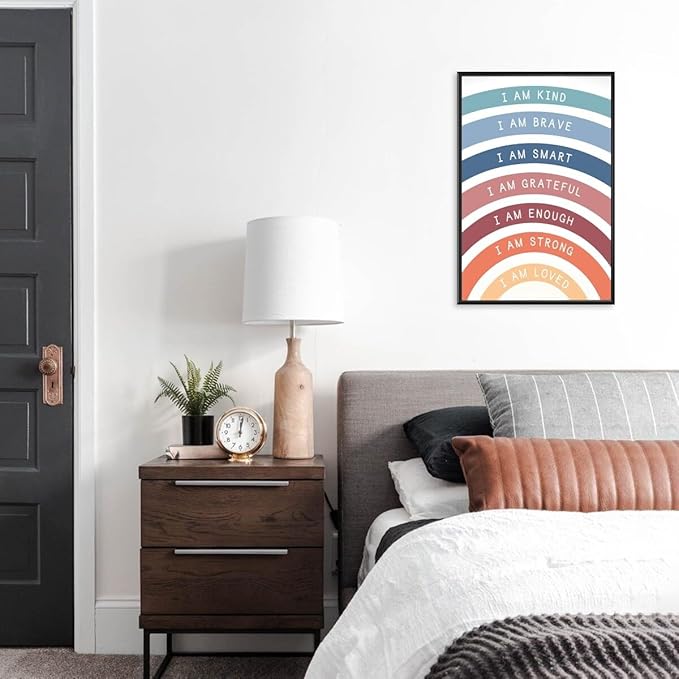 I am Kind Brave Loved Enough Motivational Canvas Wall Art Print Rainbow Quote Inspirational Art Poster Trendy Office Affirmation Wall Decor Minimalist Picture Painting Home Decor 16x24inch black framed