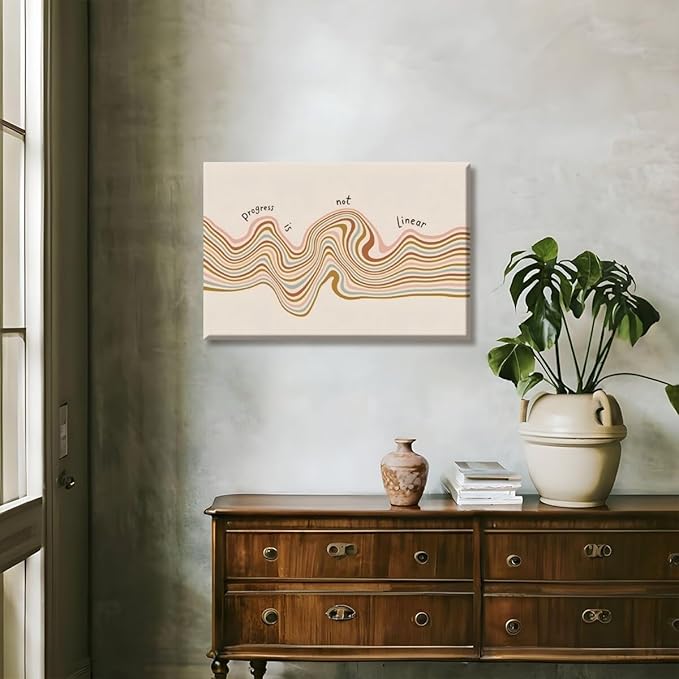 Progress is Not Linear Motivational Canvas Wall Art Print Mental Health Quote Inspirational Art Poster Therapy Psychologist Home Office Affirmation Wall Decor Minimalist Picture 20x30inch Unframed