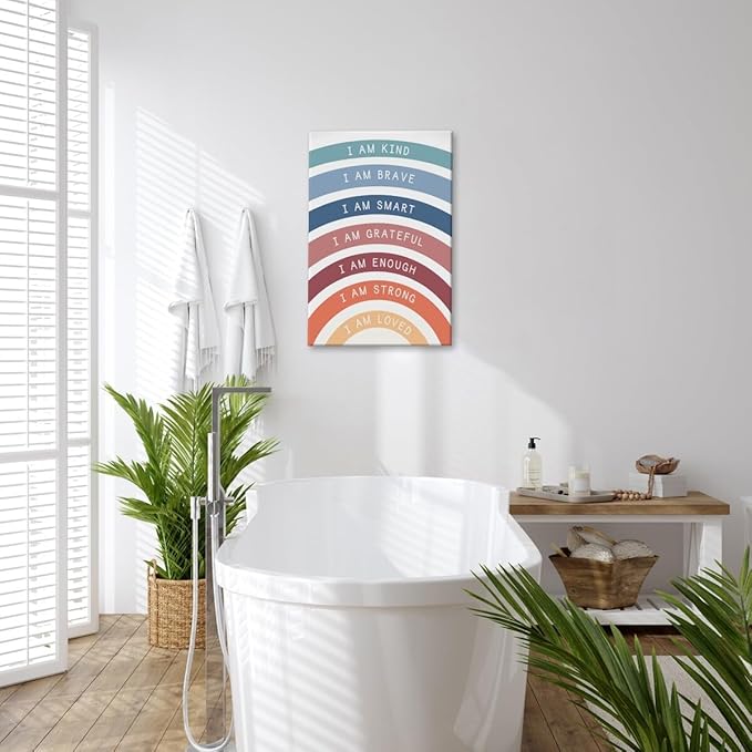 I am Kind Brave Loved Enough Motivational Canvas Wall Art Print Rainbow Quote Inspirational Art Poster Trendy Office Affirmation Wall Decor Minimalist Picture Painting Home Decor 20x30inch Framed