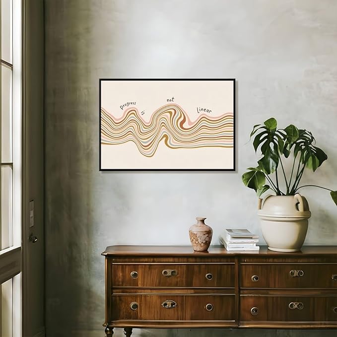 Progress is Not Linear Motivational Canvas Wall Art Print Mental Health Quote Inspirational Art Poster Therapy Psychologist Home Office Affirmation Wall Decor Minimalist Picture 8x12inch black framed