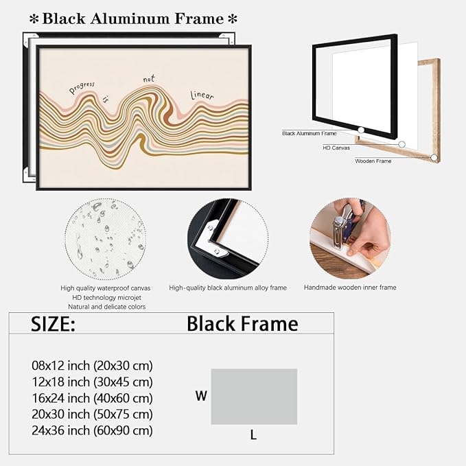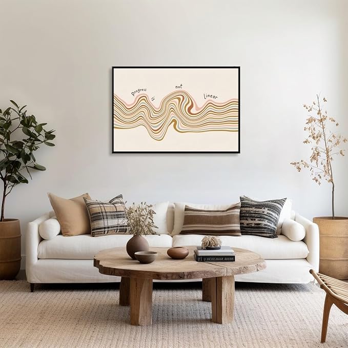 Progress is Not Linear Motivational Canvas Wall Art Print Mental Health Quote Inspirational Art Poster Therapy Psychologist Home Office Affirmation Wall Decor Minimalist Picture 12x18inch black framed
