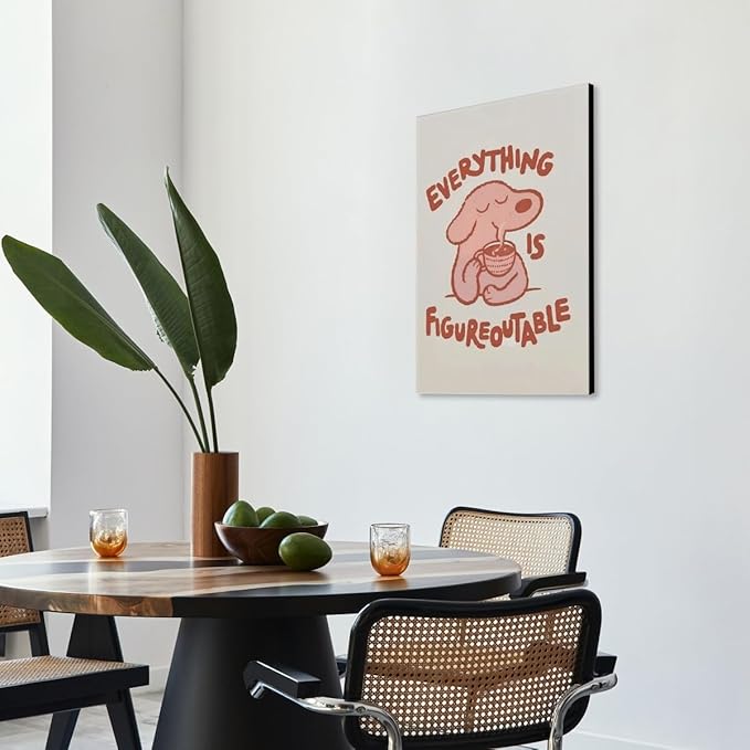 Everything is Figureoutable Motivational Canvas Wall Art Print Cute Dog Quote Inspirational Art Poster Mental Health Home Office Kids Affirmation Wall Decor Minimalist Picture 20x30inch Framed