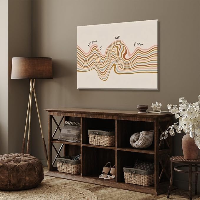 Progress is Not Linear Motivational Canvas Wall Art Print Mental Health Quote Inspirational Art Poster Therapy Psychologist Home Office Affirmation Wall Decor Minimalist Picture 24x36inch Framed