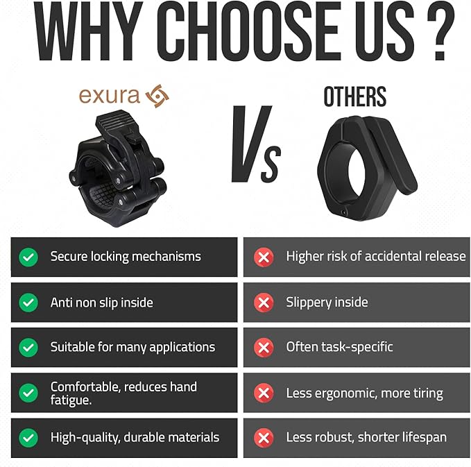 EXURA Pair of Anti Slip Barbell Clamps Two Units Collars Weight Clips, Anti Slip Pair of Olympic Barbell Clamps, Barbell Collars, Barbell Clips, Weight Clips for Bars, Gym Clips, Weight Clamps