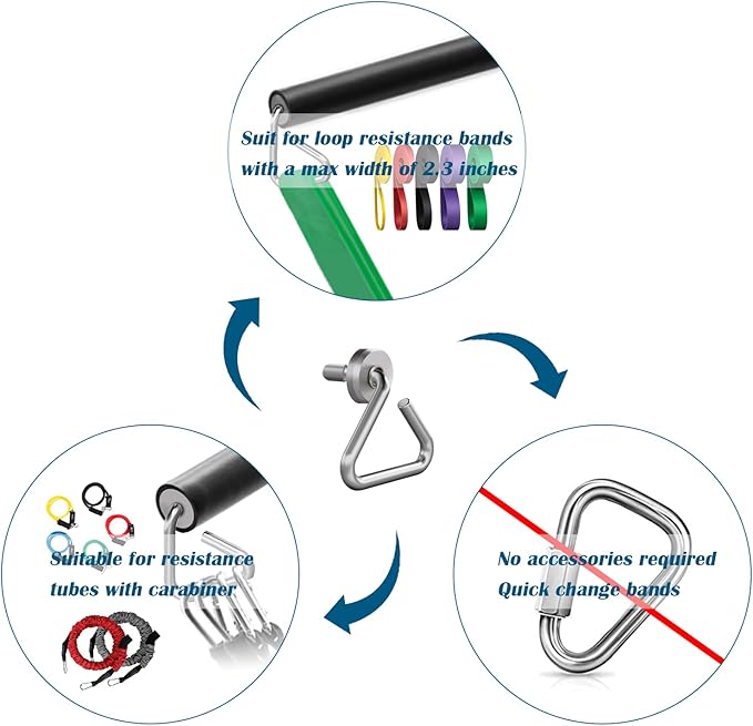 • [Perfect Applicability] - No additional accessories are required. Easy to connect loop resistance bands(max width: 2.0in) and other bands with carabiners. Convenient and quick to change weight.