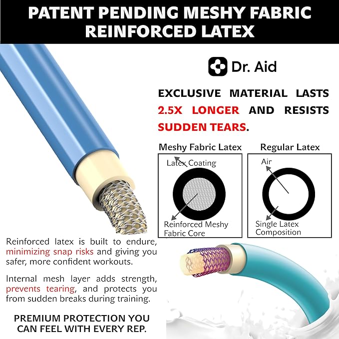 • Train every muscle, anywhere: Transform any space into your personal gym with Dr. Aid bands for working out. Designed for full-body training, these workout bands resistance sets help strengthen arms, shoulders, chest, core, glutes, and legs—anytime, anywhere. Whether you’re doing upper-body sessions at home, lower-body stretches on the go, or full routines at the gym, these stretch bands for exercise provide portable power and targeted muscle activation.